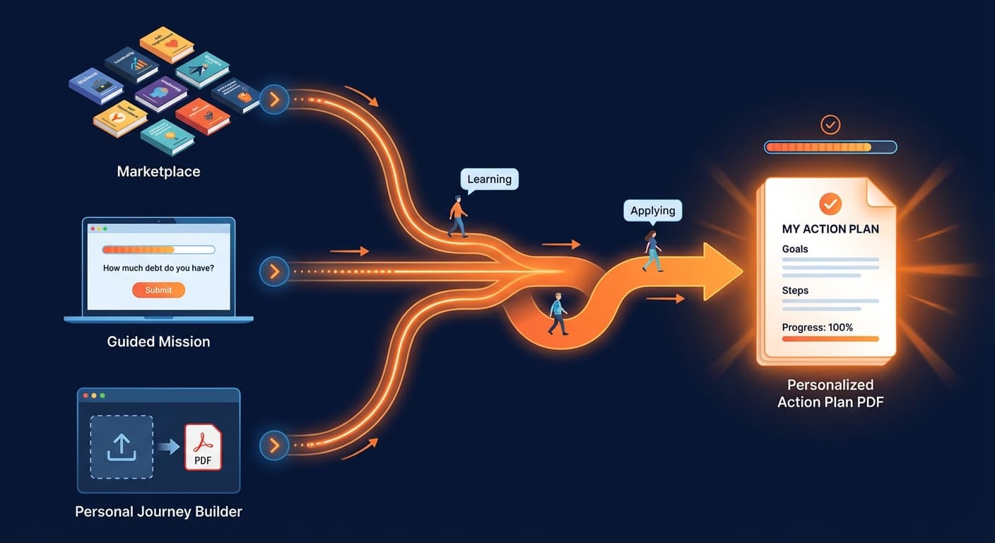 Pick a book. Go through AI missions. Get a personalized 20+ page PDF action plan.